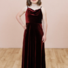Our Rory dress has a beautiful v-neck with built-in cups and adjustable spaghetti straps to flatter and support every bust size. The gathering in the front covers the tummy, offering a fitted but more forgiving bodice. Rory pairs wonderfully with our Dawson and Jade dresses. We decrease the slit height 3 inches specifically for the TALL length option when you place your final order.